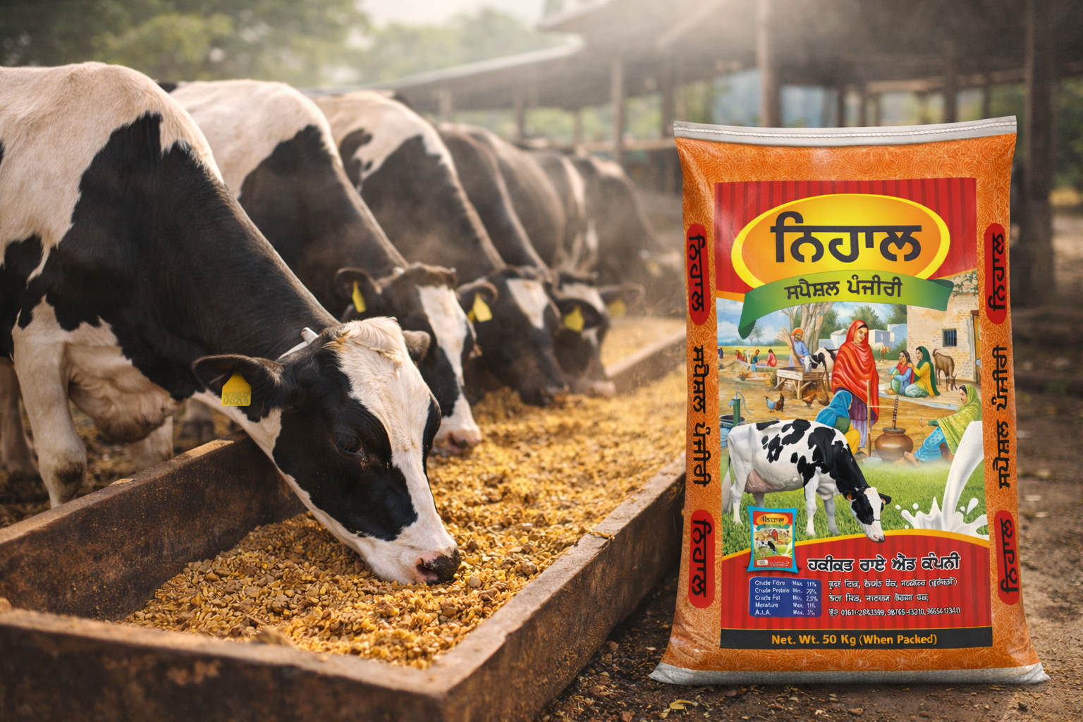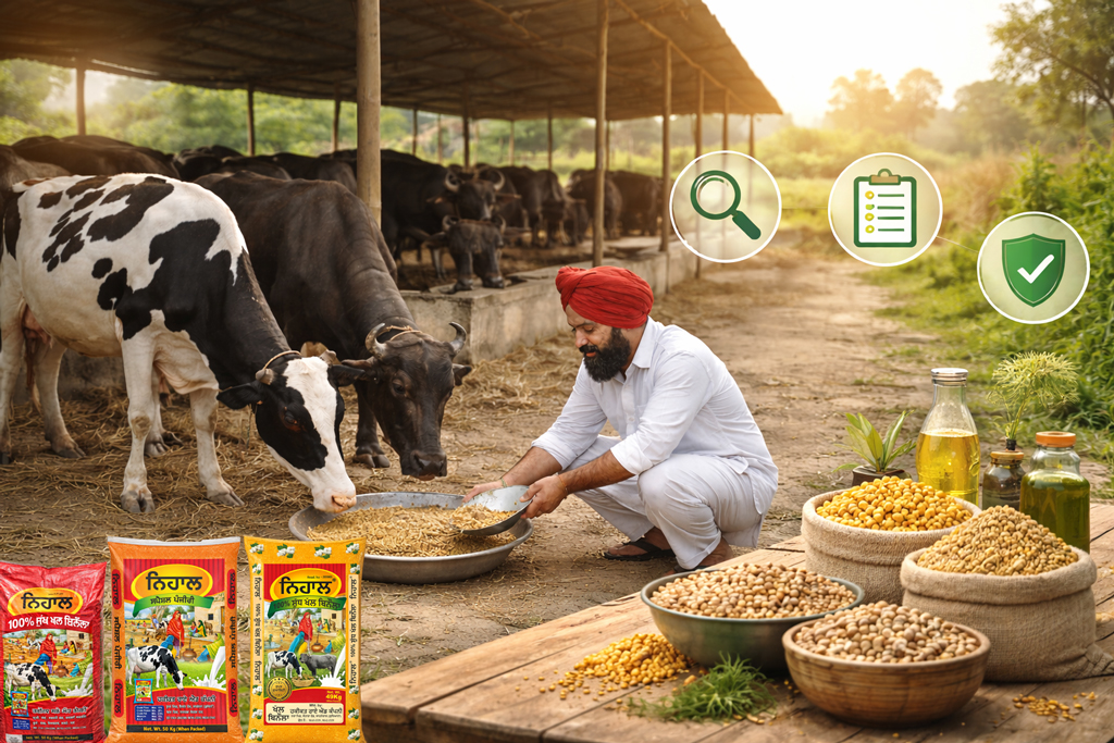 ABOUT US NIHAL FEEDS is a trusted cattle feed brand committed to supporting farmers with high-quality, nutrition-rich animal feed. Our goal is to improve cattle health and increase milk production through balanced and carefully formulated feed solutions. We use premium raw materials enriched with essential vitamins and minerals to ensure better digestion, strength, and overall animal well-being. Every product is developed with a deep understanding of farmers’ needs and daily challenges. At NIHAL FEEDS, we believe that healthy cattle lead to better productivity and stronger farming communities.