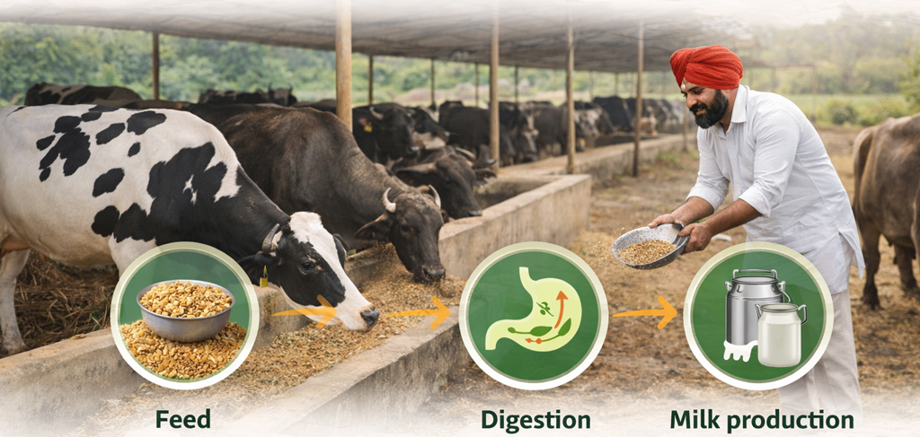 Specially formulated feed helps increase milk yield naturally while maintaining cattle health, energy, and consistent productivity.